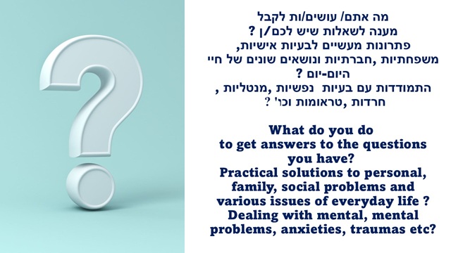 ספטיניה סולר מנחה אתכם באופן אישי את הדברים שאינכם מבינים או מתכחשים להם, מסייעת ומלמדת אתכם שיהיה לכם יותר קל להתמודד ולהתגבר על בעיותיכם השונות באופן המעשי ולענות על שאלותיכם השונות